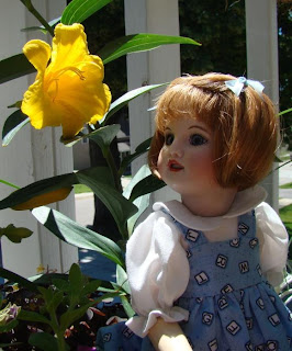 Good Morning....it's been a crazy these last couple+ weeks since we've returned from Dad's. Getting back in the swing of things takes me a little longer than it used too...(hu-m-m?)...once we got back, Jerry's brother, Don stansed with us for about a week, so that kept me out of the studio more days. It sure was great to see Don again....always enjoy his visits. Things are pretty close to normal again....I've got the ol' cog in the wheel turning once more. Oh......The landscaping is done in the front and the back deck is done too, so we can enjoy the rest of the summer and watch things grow and relax on our deck. Having the deck in the back has opened an entirely new part of our home.....it's almost like having another room....Enough of that....Yesterday I finished four new girls. Chyna, she's a 14 inch Asian. I put her on a Rosette body.....because I love being able to post my dolls....I thought well, maybe other people would like that too. Besides, she can now double as a friend to Rosette, if one would choose. The other two little Asian kids are from an Effner mold....and has quickly captured my heart. And last, but most definitely not least is Miss Bellette. I haven't made a new Bellette is so long and I love her face, it's just so darn beautiful....I guess I missed her so...I made one and she gorgeous, even if I do say so myself. All these little darlings are listed in my online store, you can view their listings and additional photos at www.Thedollladyinc.com